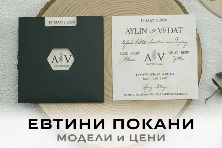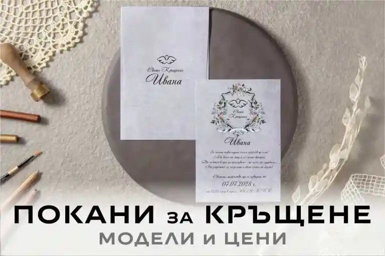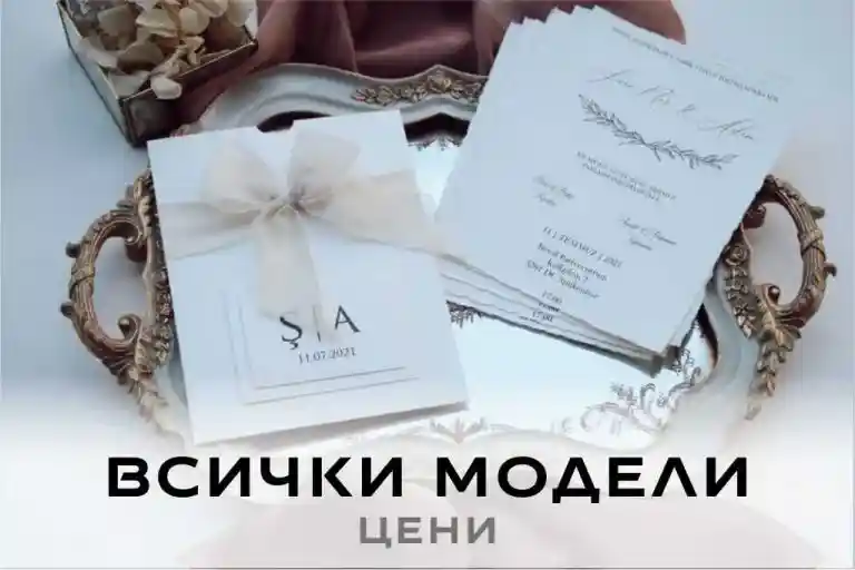 Можем да изработим всички модели покани с желания от вас текст. Цените се променят според броя на поръчаните бройки – колкото повече бройки поръчате, толкова по-ниска е цената. Някои от цените в сайта може да не са актуални, затова, за да получите актуална цена, ни пишете във Facebook, като посочите модела и броя, който желаете.